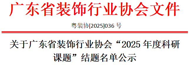 公示期為2025年12月24日至12月30日。公示期內(nèi),任何單位和個(gè)人如對(duì)擬結(jié)題課題有異議,請(qǐng)以書面、署名形式向廣東省裝飾行業(yè)協(xié)會(huì)秘書處提出,并提供必要的證據(jù)材料。